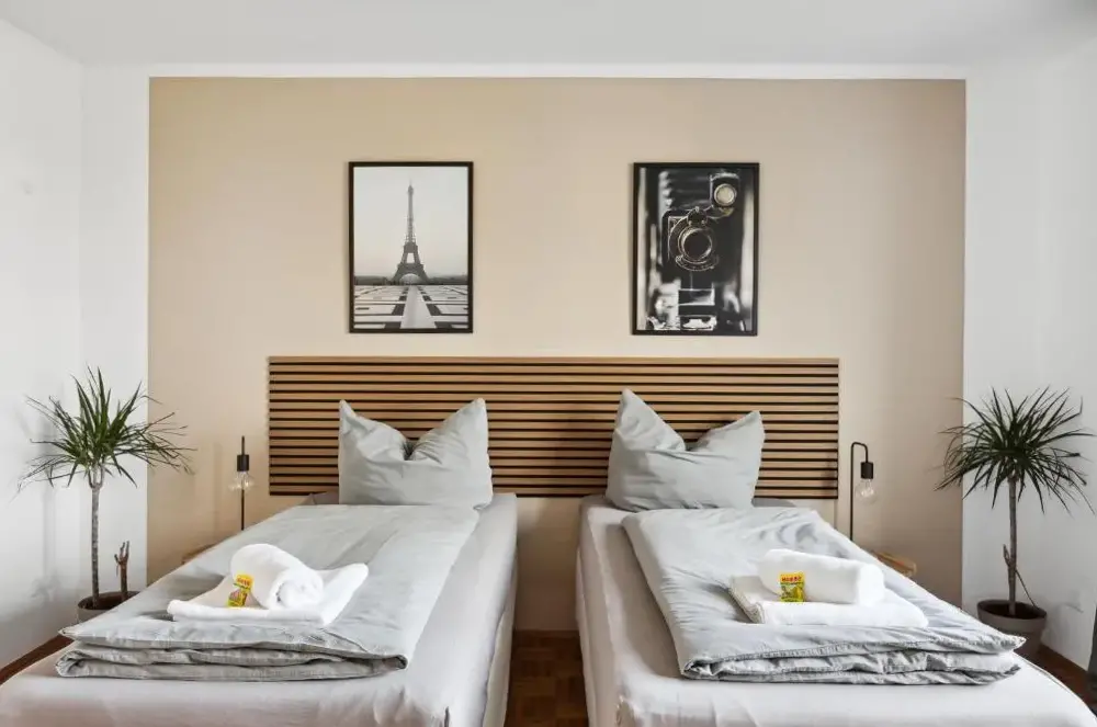 「オアセ1」はメルゼブルク市内中心部の静かな住宅地に位置し、快適な滞在をサポートするリビングスペースが整った2室のアパートメントです。キッチンと洗濯機が完備されており、最大4名様まで宿泊可能な広々とした空間で生活感溢れる日常を過ごせます。バルコニーからは周辺の緑や街並みを見渡すことができ、短期・長期問わず利用できる実用的な設備が特徴です。「フレスコ ジェラート カフェ」(約600メートル)や「タベルネフォンツェウス」(同距離)など近隣には食事処も便利に点在しています。また、車での移動にも対応可能で、「後庭」に無料駐車場があり、プライベート性を重視した旅行者向けとなっています。観光スポットとしては、「ニュー=アウグストゥスブルク城」(約16キロメートル)、「ゲイゼルトーゼ湖」(同8キロメートル)、あるいは「モーリッツブルク城」(同15キロメートル)へのアクセスも良好です。家族連れでも安心のレイアウトでありながら、ローカルな雰囲気を楽しめる場所と言えます。